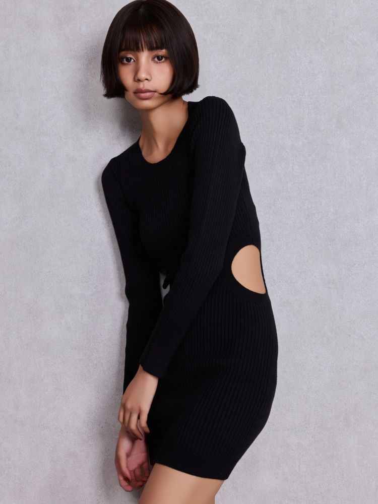 LONG SLEEVE SIDE OPEN ニットミニワンピース