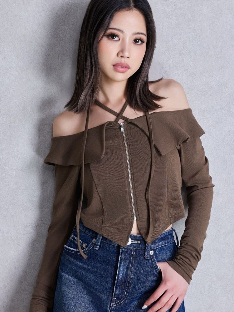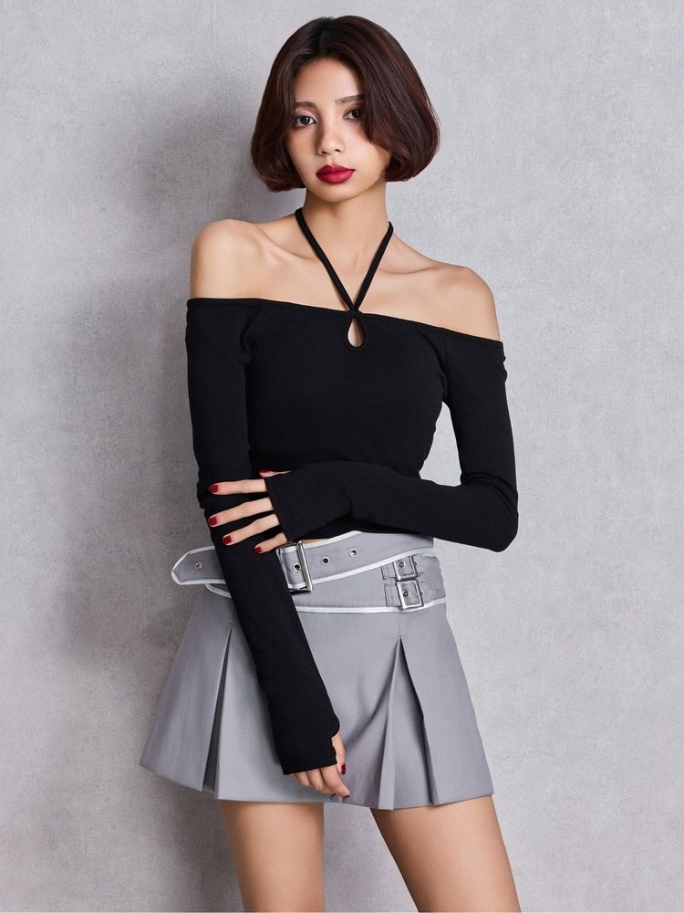 フロントZIPクロスチョーカーショートトップス