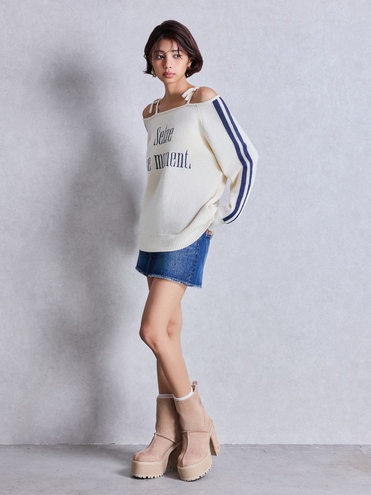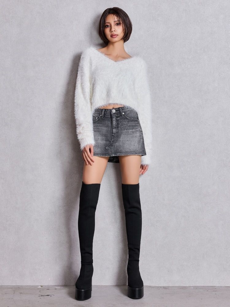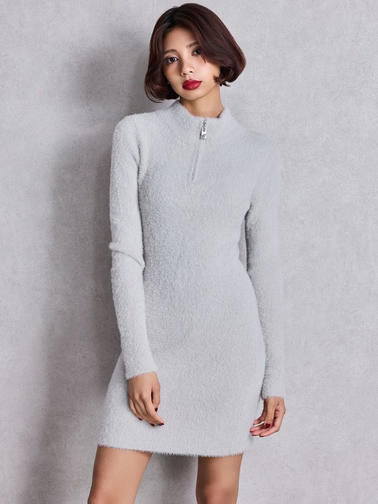 ZIPミニシャギーニットワンピース
