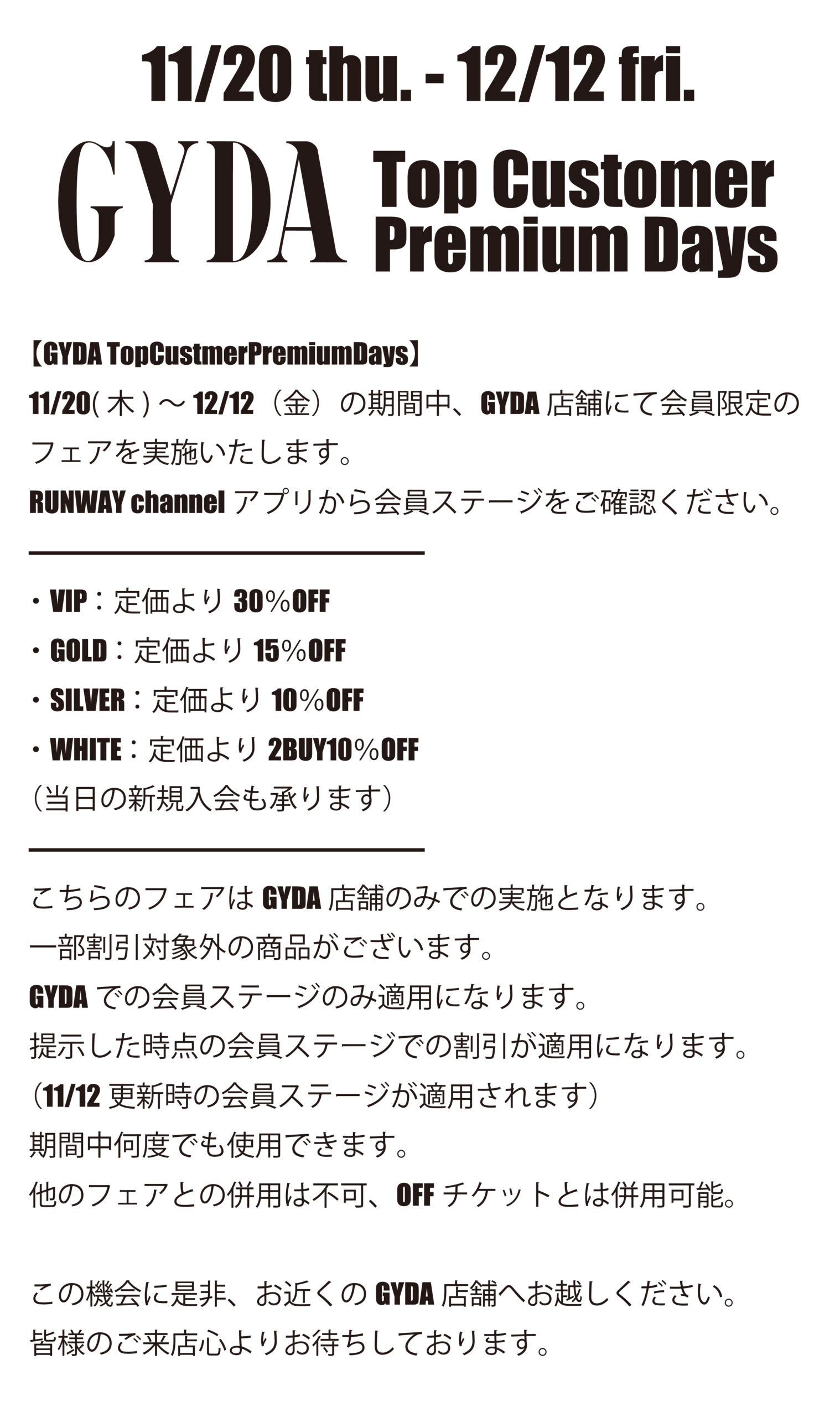 【GYDA TopCustmerPremiumDays】 11/20(木)~12/12(金)
